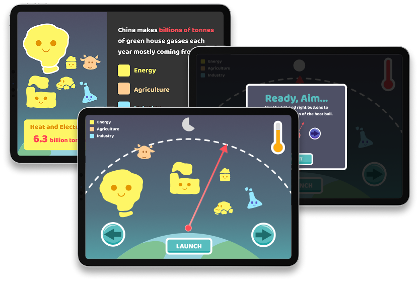 I designed a mockup of a game for an educational children’s gaming app that would feature a collection of mini-games. Cool the Earth, teaches kids how different countries contribute to greenhouse gas emissions by amount and sector. Through hands-on, interactive play, children can learn how greenhouse gases impact global warming.